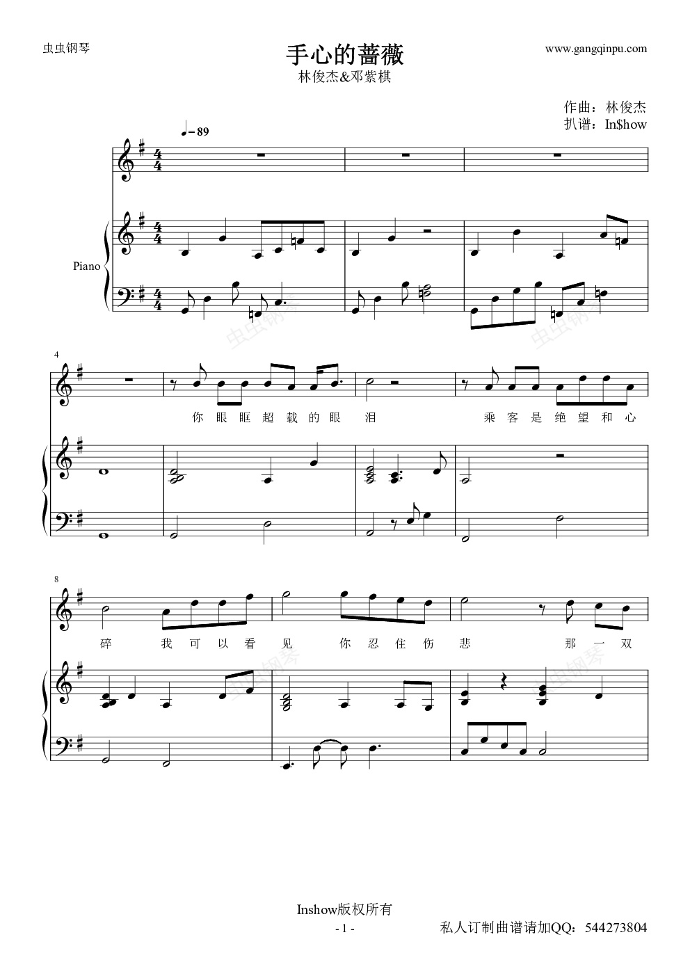 钢琴谱:手心的蔷薇 [附歌词弹唱谱]- 林俊杰&邓紫棋