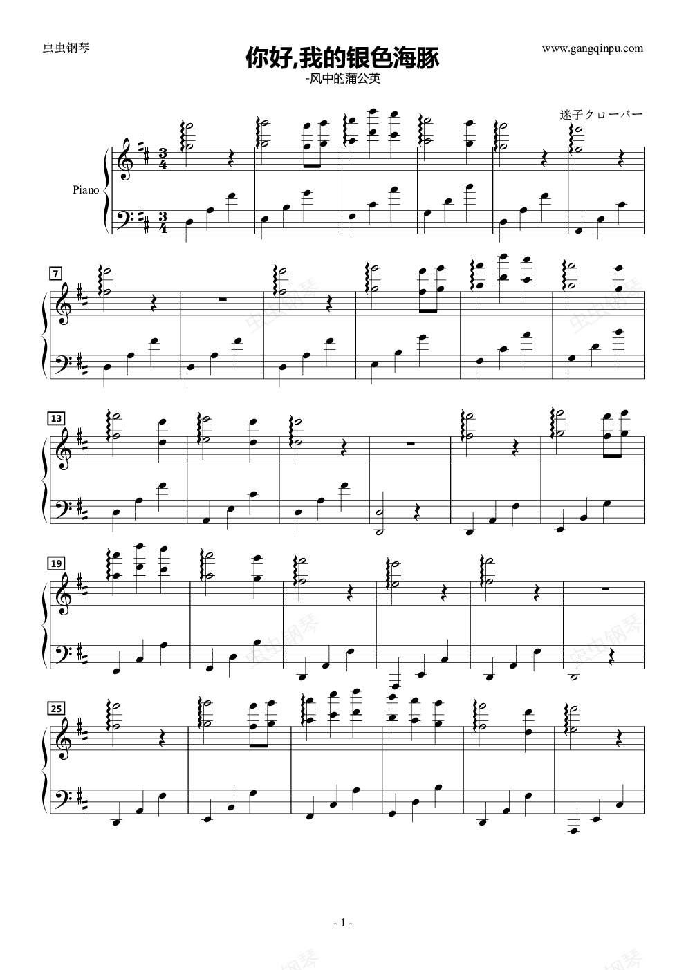 钢琴谱:你好,我的银色海豚