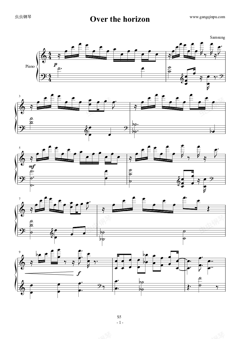 钢琴谱:三星 GALAXY S5 主题曲 Over the Horizon