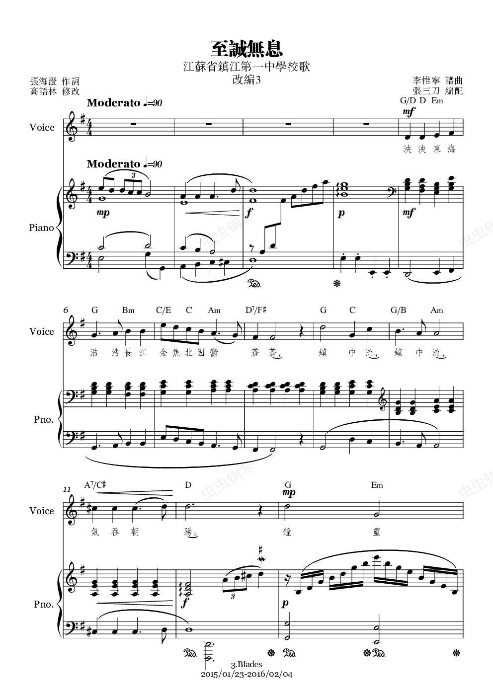 钢琴谱:(作废)【镇江一中校歌】至诚无息