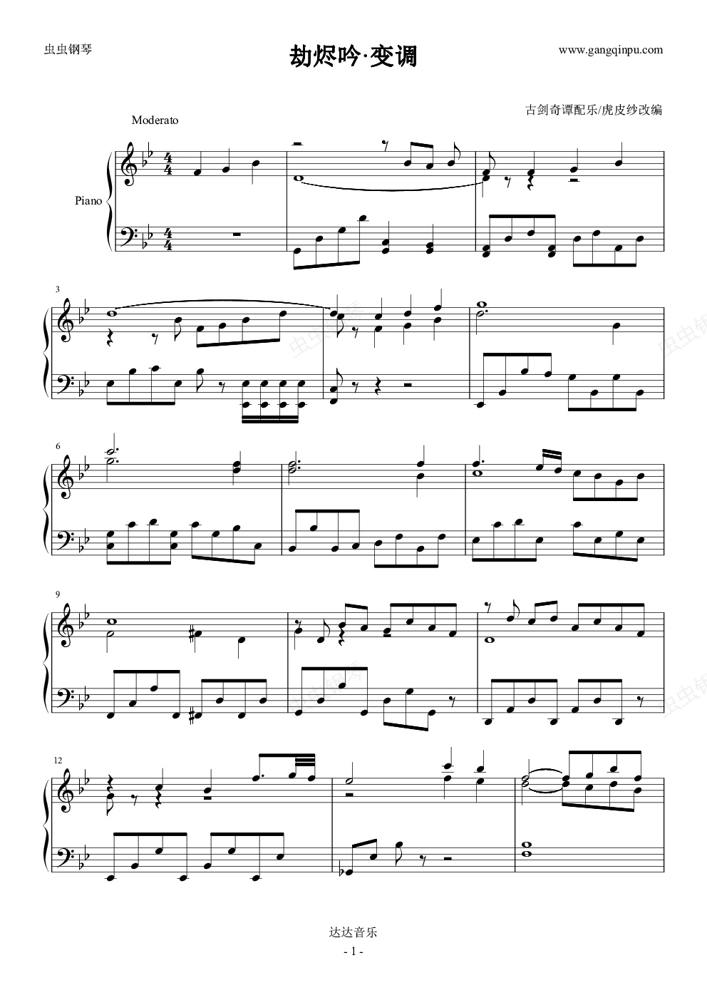钢琴谱:古剑奇谭 劫烬吟·变调