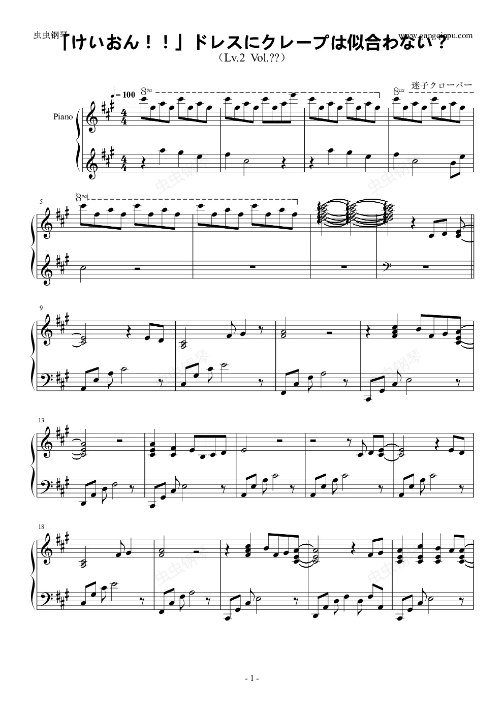 钢琴谱:「けいおん!!」ドレスにクレープは似合わない