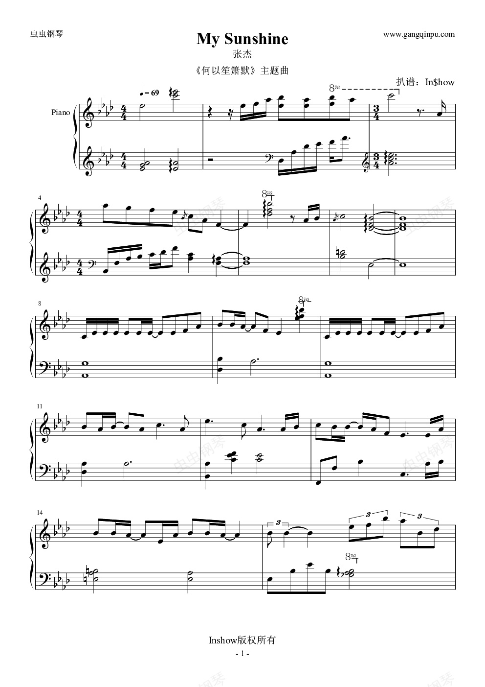 钢琴谱:My Sunshine《何以笙箫默》主题曲 - 张杰