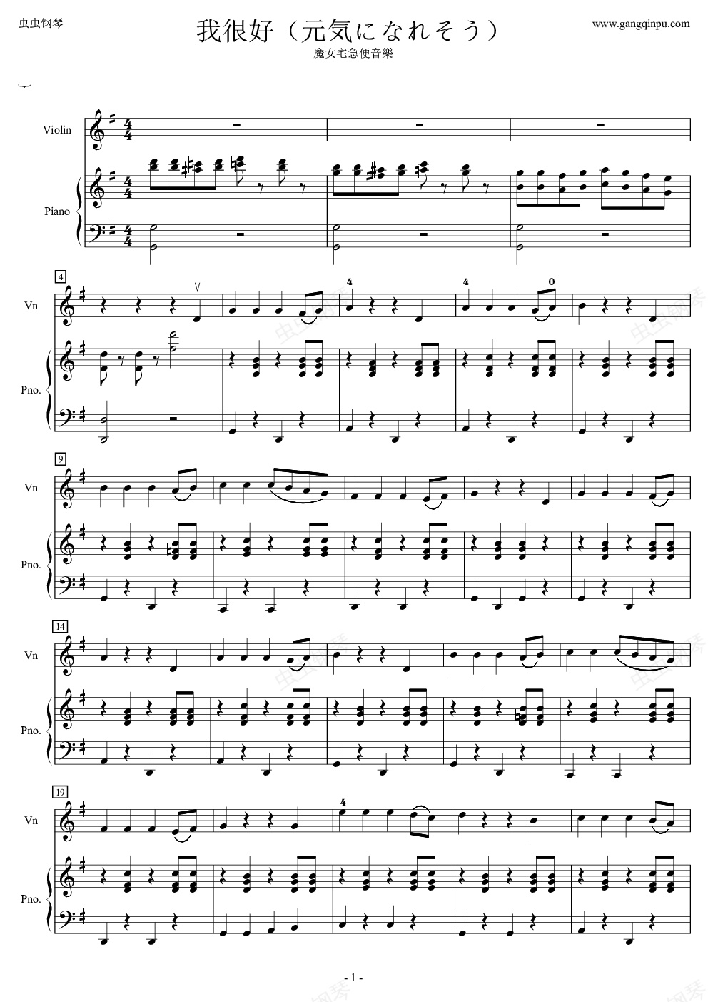 钢琴谱:魔女宅急便音樂--我很好(元気になれそう)