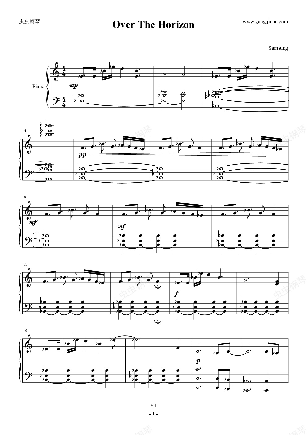 钢琴谱:三星 GALAXY S4 主题曲 Over the Horizon