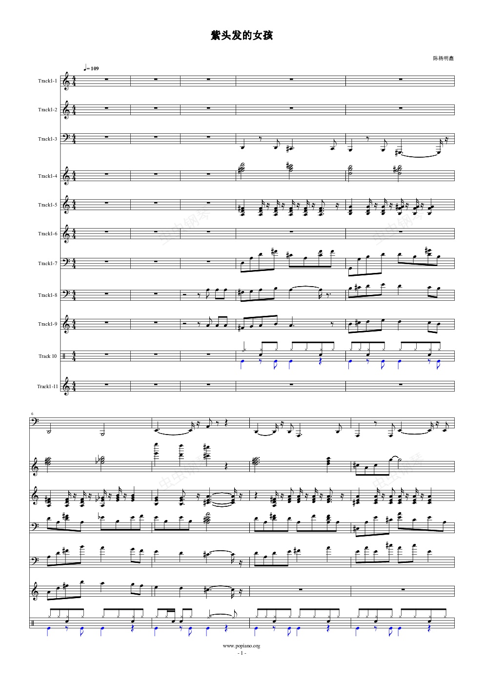 钢琴谱:紫头发的女孩