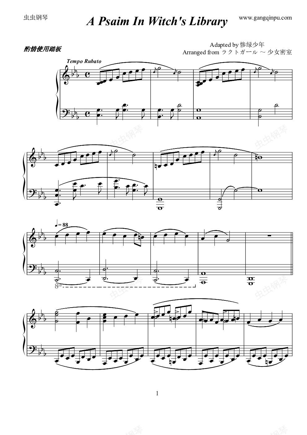 钢琴谱:【东方?】A Psaim in Witch's library