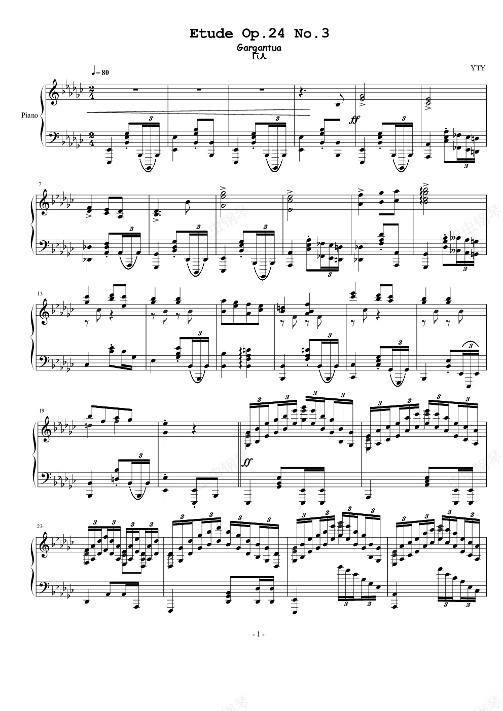 钢琴谱:练习曲 op.24 no.3 卡刚杜亚