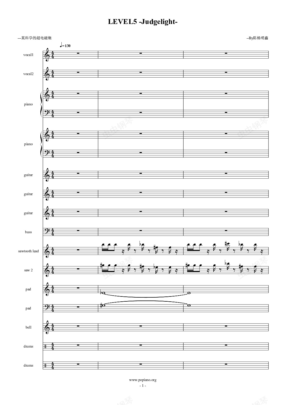 钢琴谱:LEVEL5 -Judgelight-