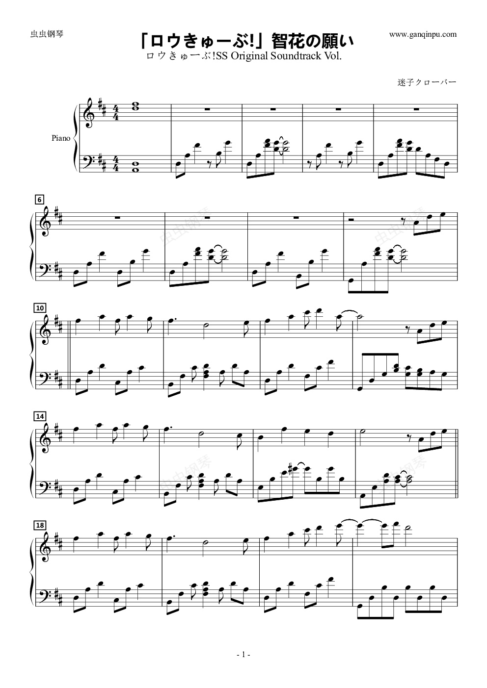 钢琴谱:「ロウきゅーぶ!」智花の願い