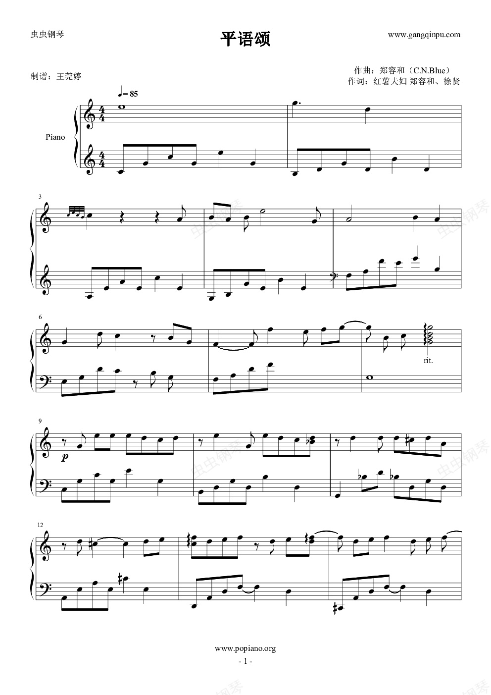 钢琴谱:为了第一次恋爱的人们 - 平语颂