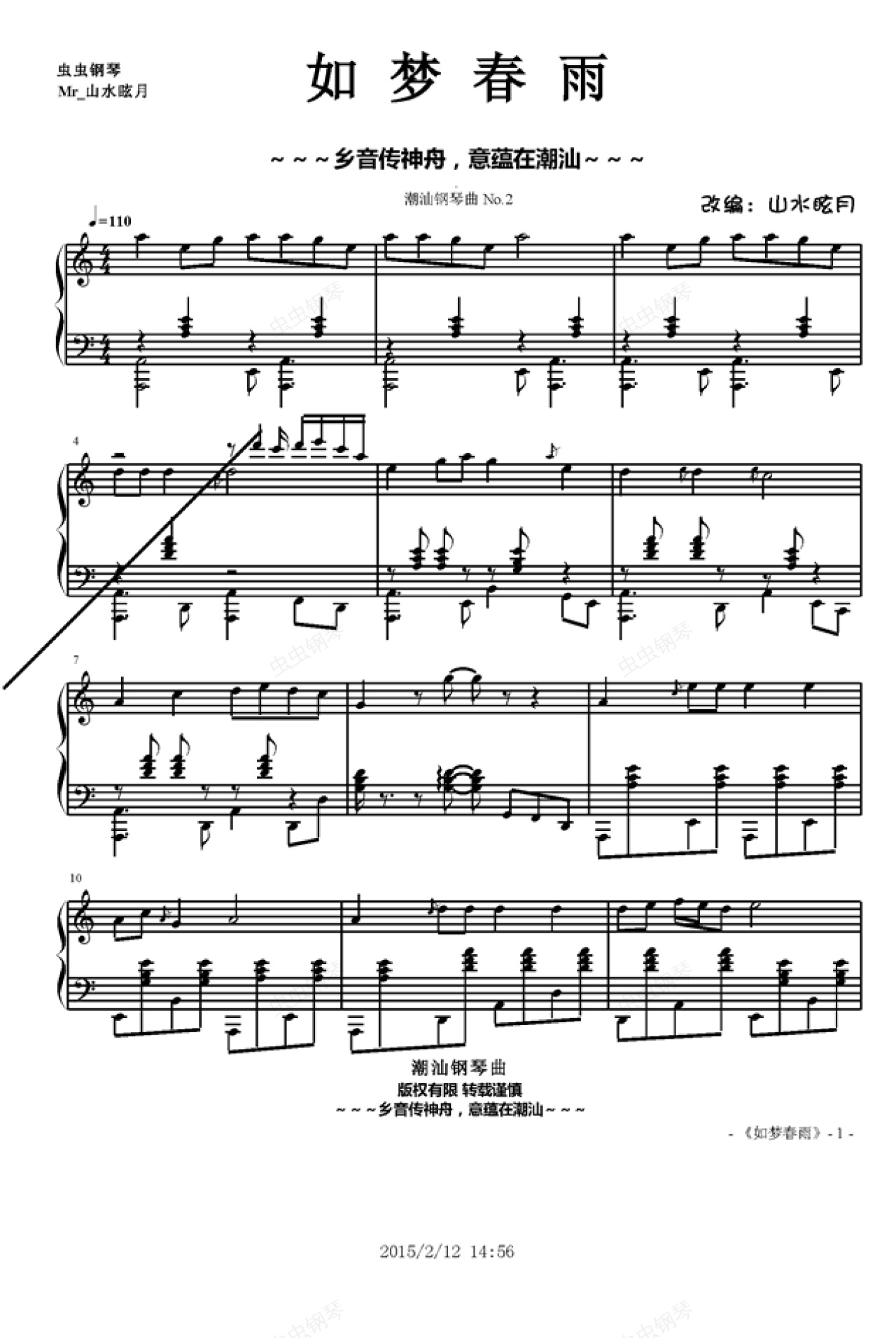 钢琴谱:【潮汕钢琴曲】No.2 如梦春雨