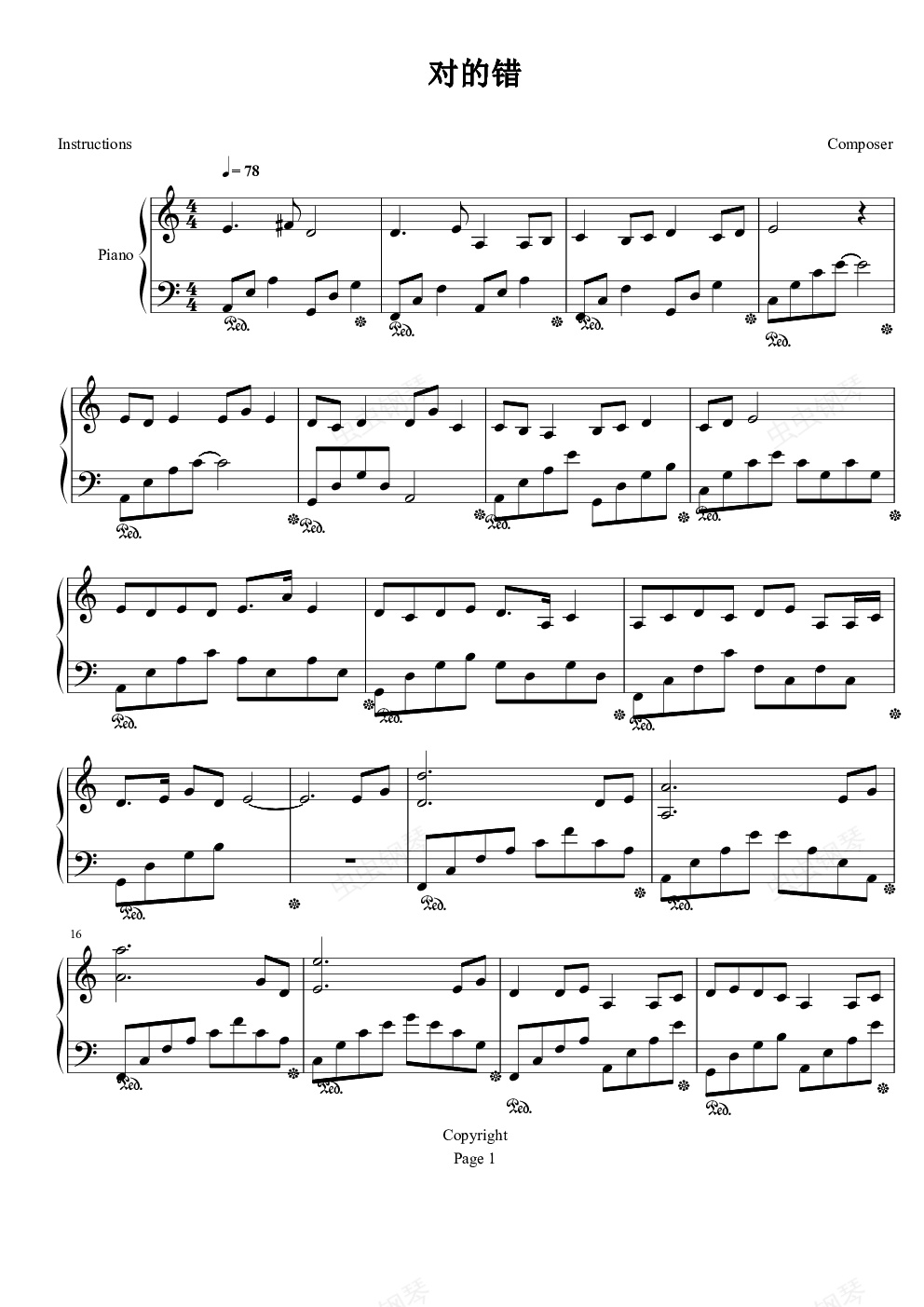 今天弹琴时候无意间觉得这个曲调不错,也想不出来是哪一首歌的,权且当成原创吧……第一次试着作曲,比较粗陋……以后会多多进步!!哈哈哈!!
