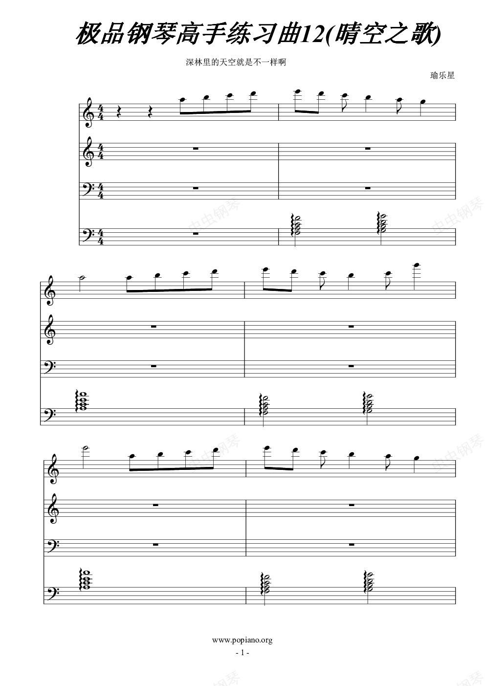 钢琴谱:极品钢琴高手练习曲1(晴空之歌)