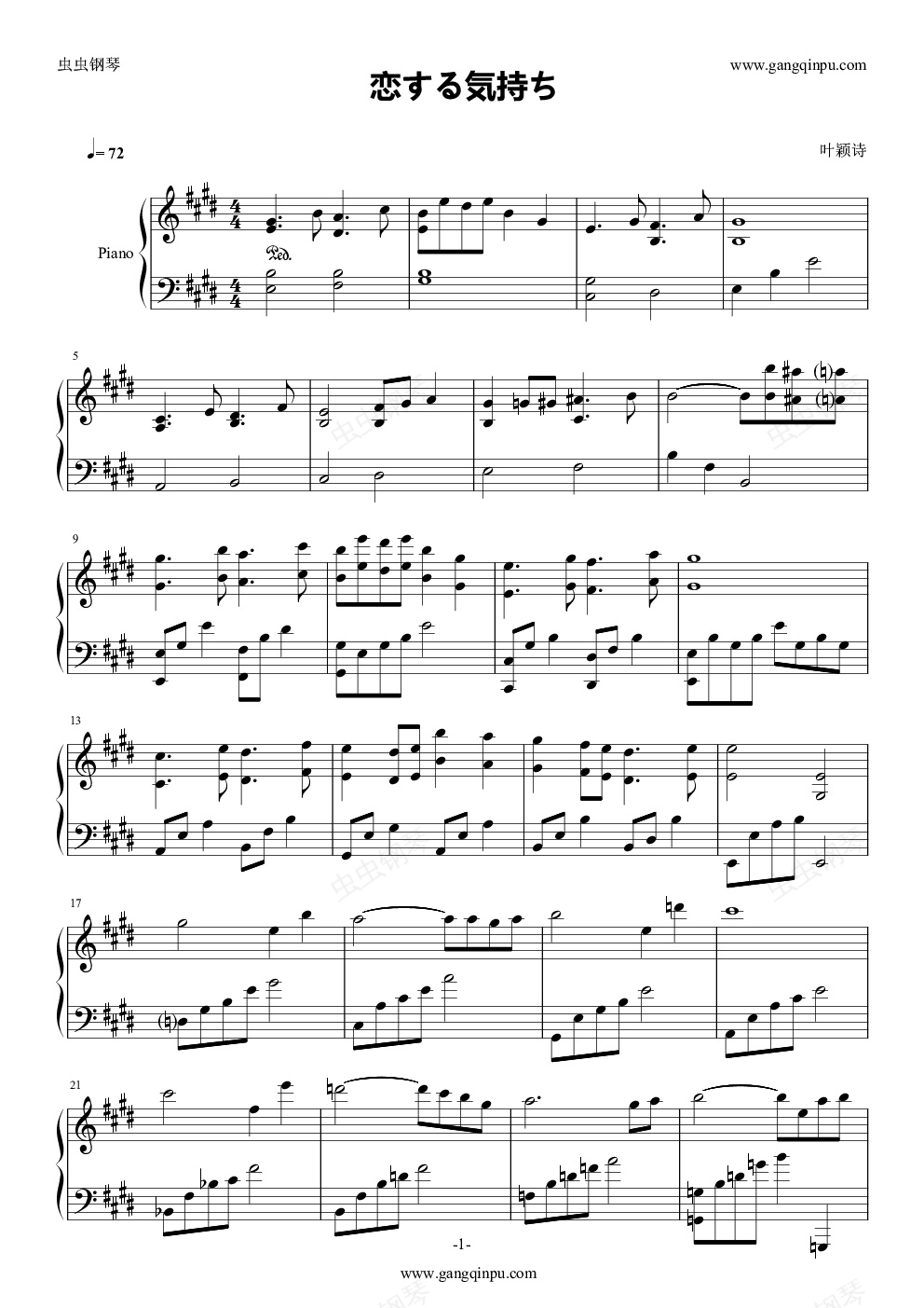 钢琴谱:schooldays【日在校园】-恋する気持ち