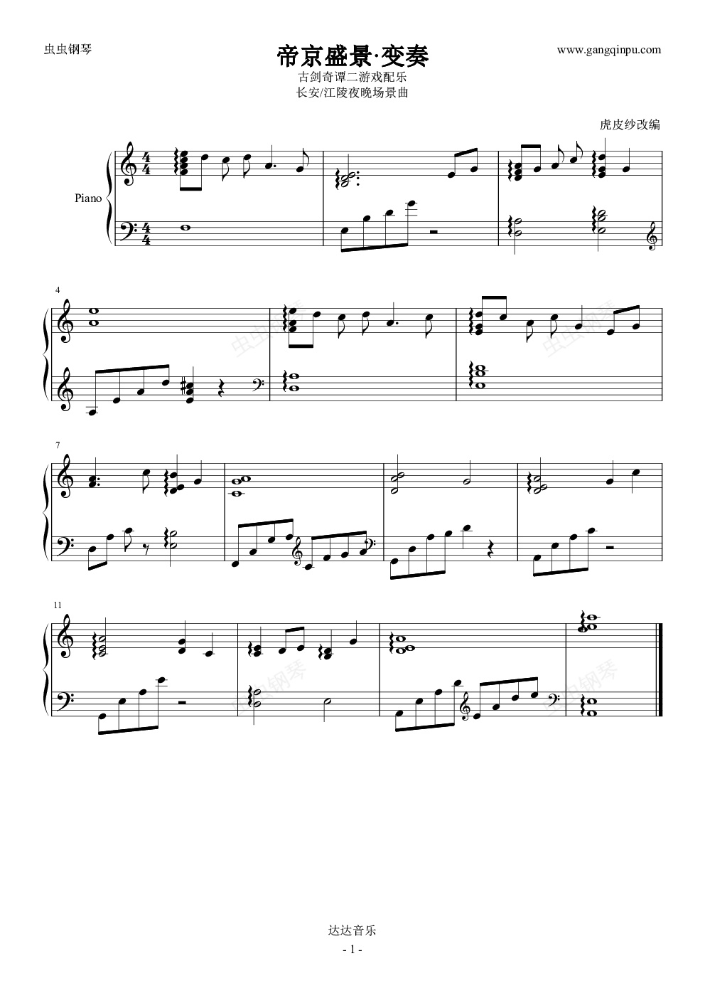 钢琴谱:古剑奇谭二 帝京盛景·变奏