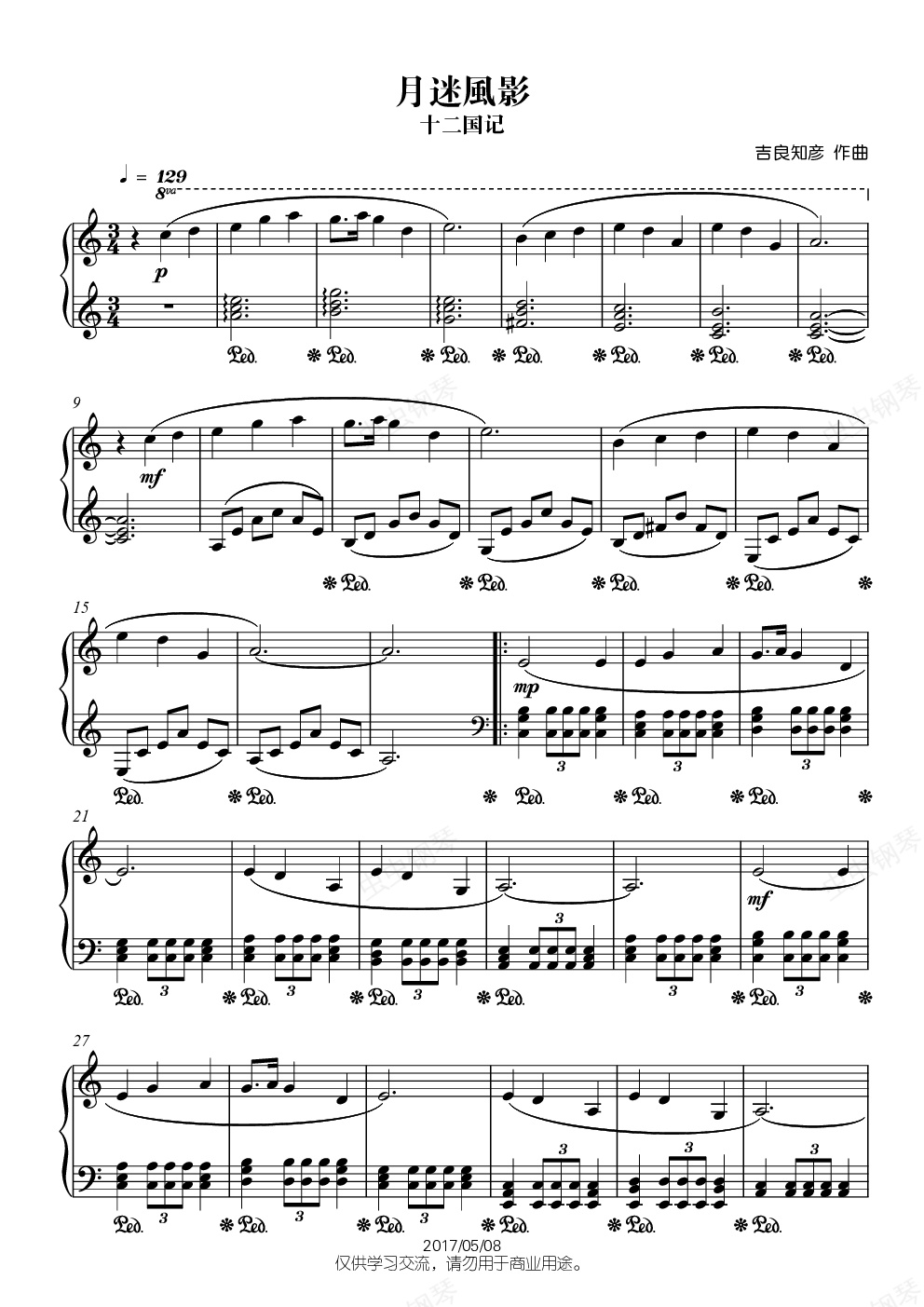 钢琴谱:(作废)【十二国记】月迷風影