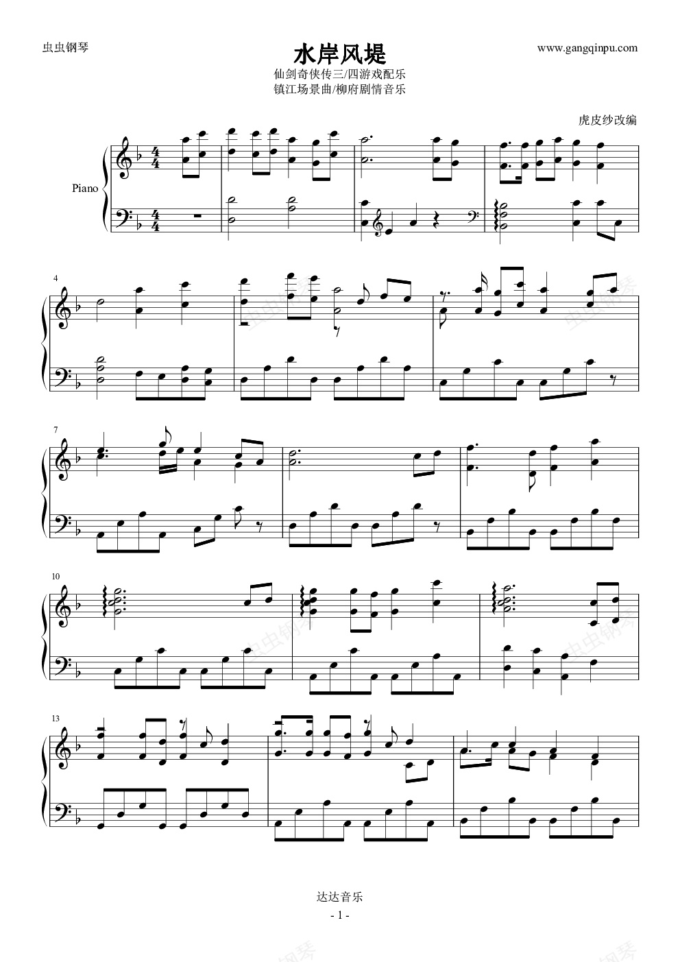 钢琴谱:仙剑三/仙剑四 水岸风堤
