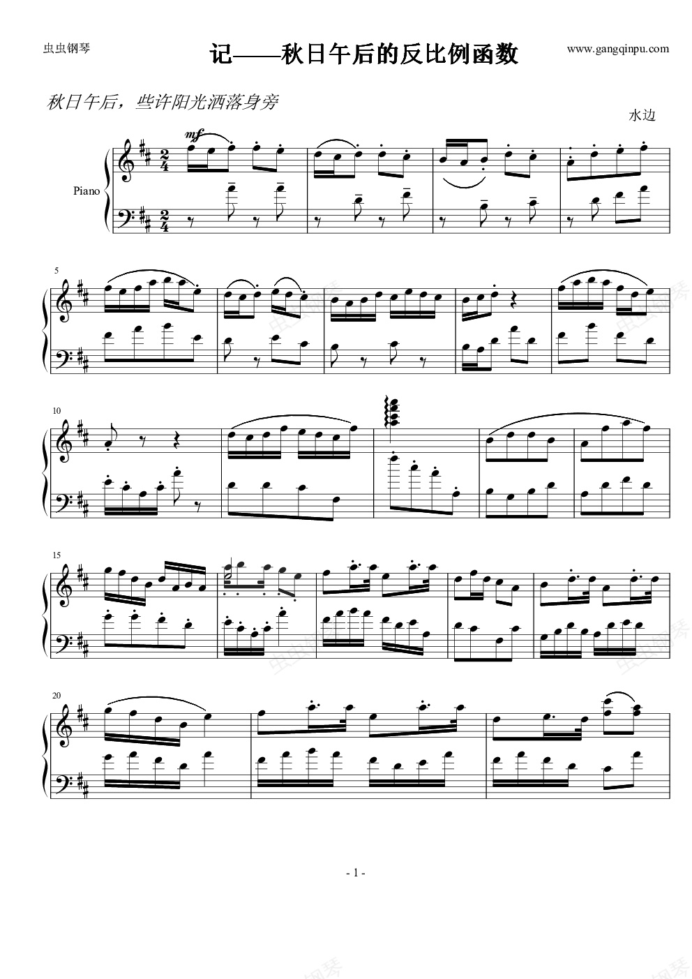 钢琴谱:秋日午后的反比例函数