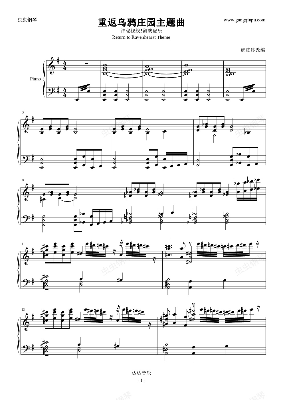 钢琴谱:神秘视线5 重返乌鸦庄园主题曲