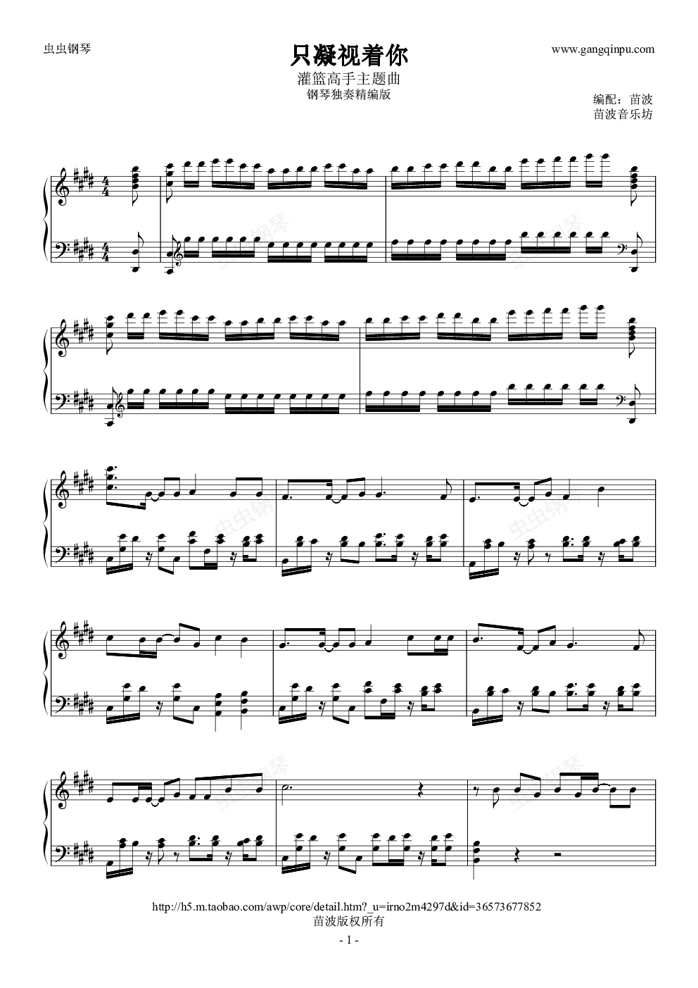 钢琴谱:灌篮高手主题曲-只凝视着你