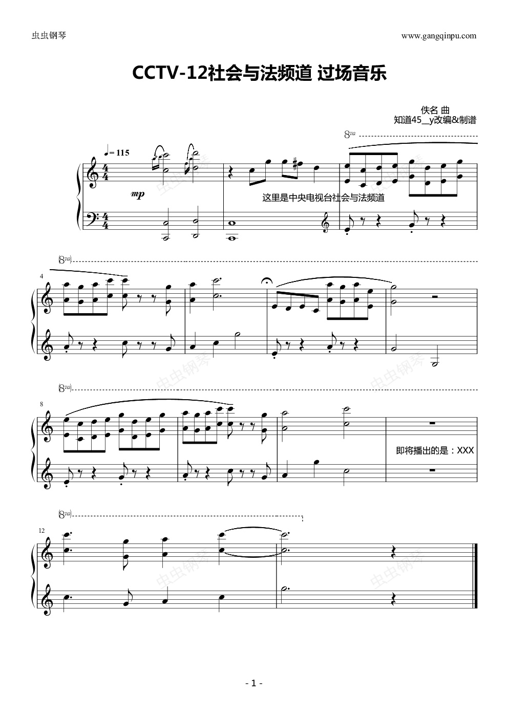 钢琴谱:CCTV12社会与法频道 过场音乐
