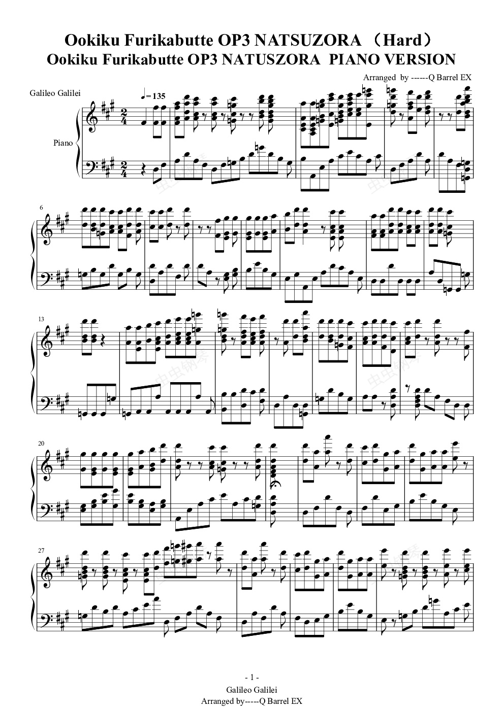 钢琴谱:王牌投手振臂高挥夏季大赛篇op-《夏空》修正版