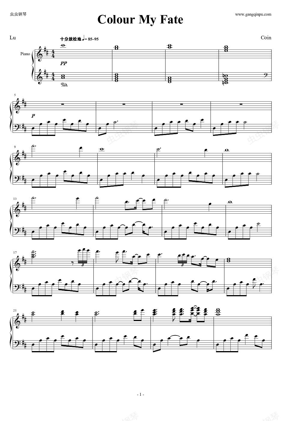 钢琴谱:Colour My Fate