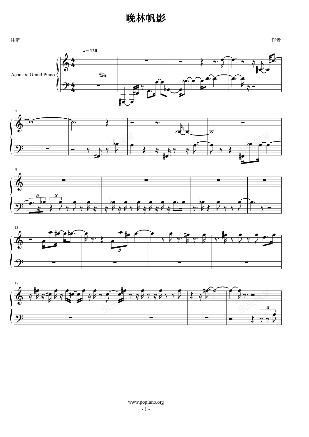 钢琴谱:晚林帆影
