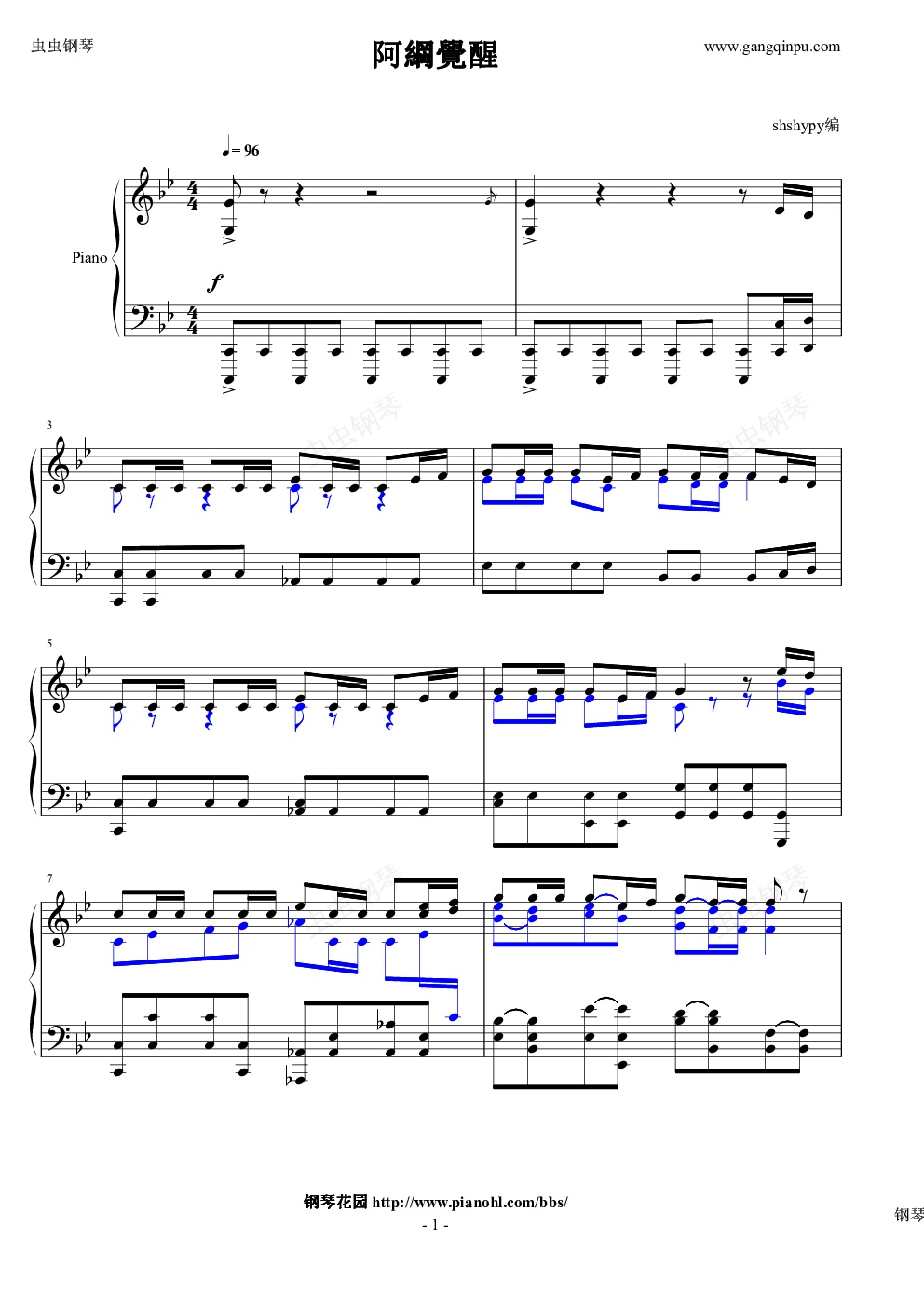 钢琴谱:阿纲觉醒