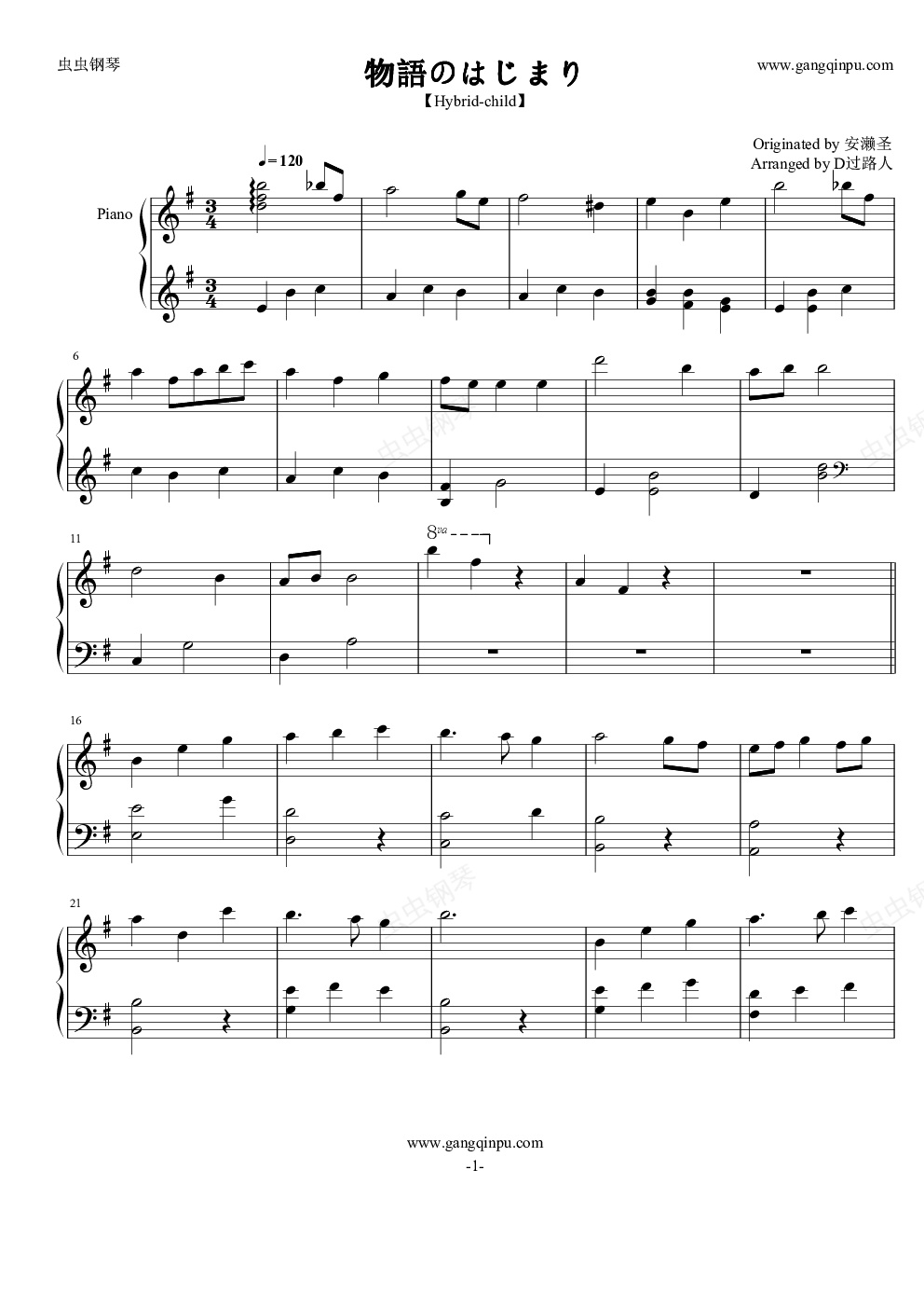 钢琴谱:【Hybrid-Child】OST物語のはじまり