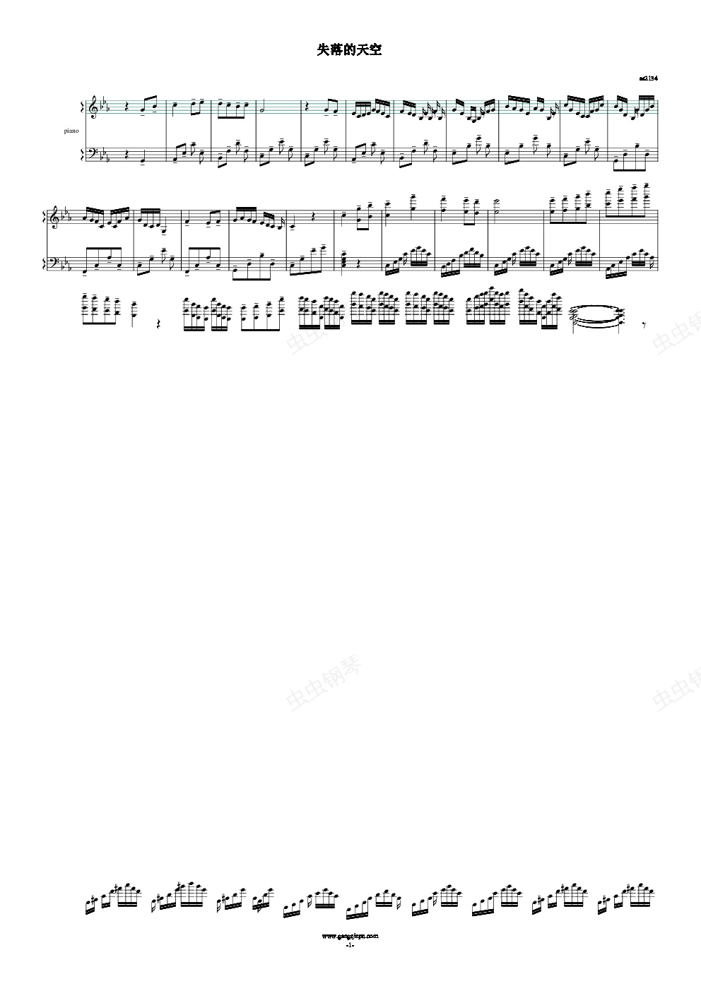 钢琴谱:失落的天空