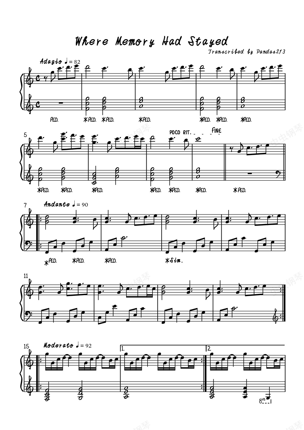 钢琴谱:Where Memories Had Stayed