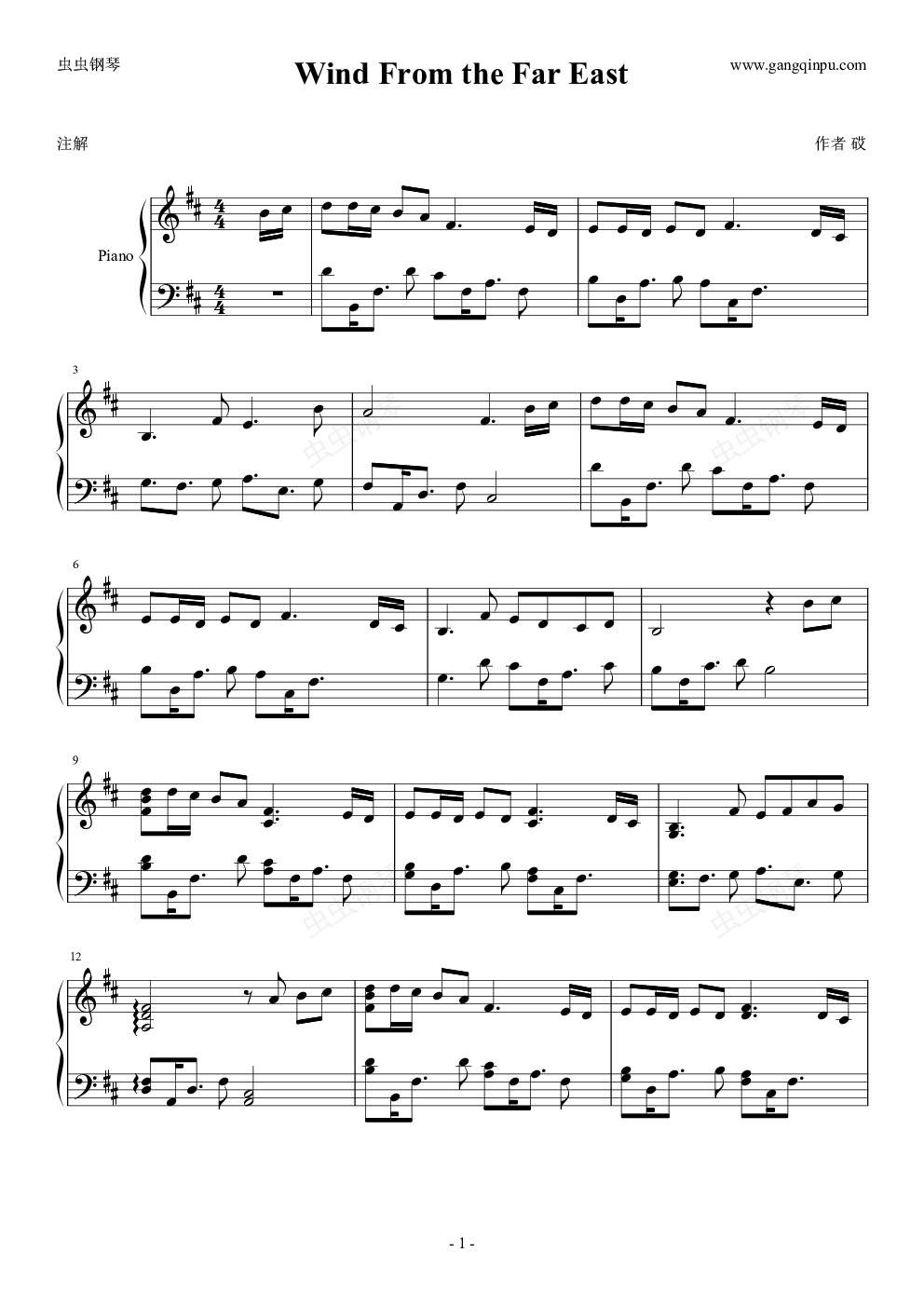 钢琴谱:彩虹岛上京BGM-远东的风