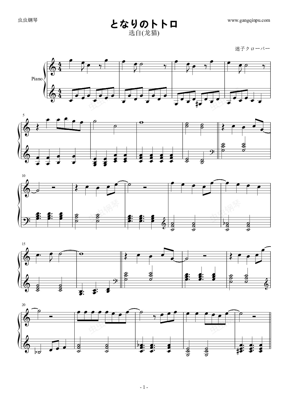 钢琴谱:となりのトトロ-龙猫