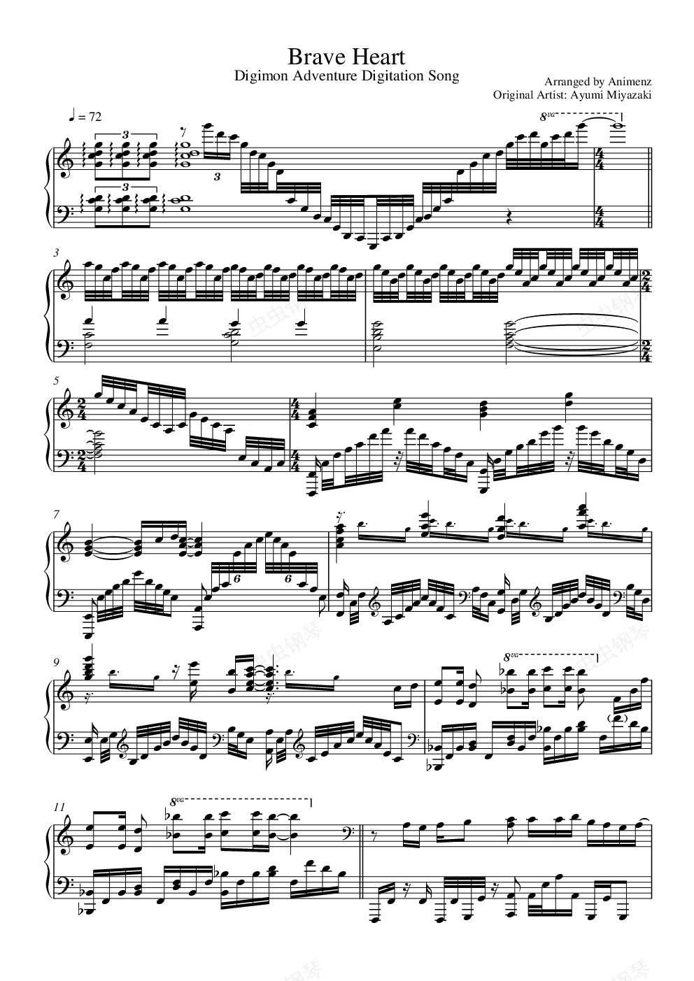 钢琴谱:Digimon-OP 【Brave Heart】