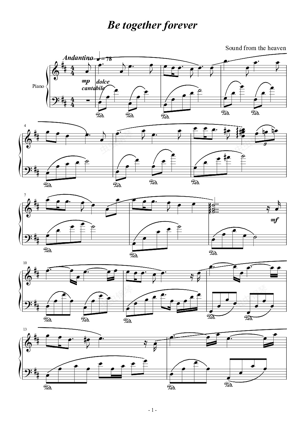 钢琴谱:Be together forever