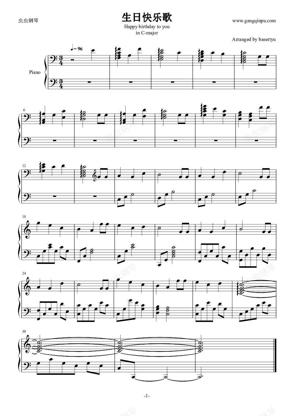 钢琴谱:祝你生日快乐 Happy birthday to you (生日快乐歌)(basertyu)