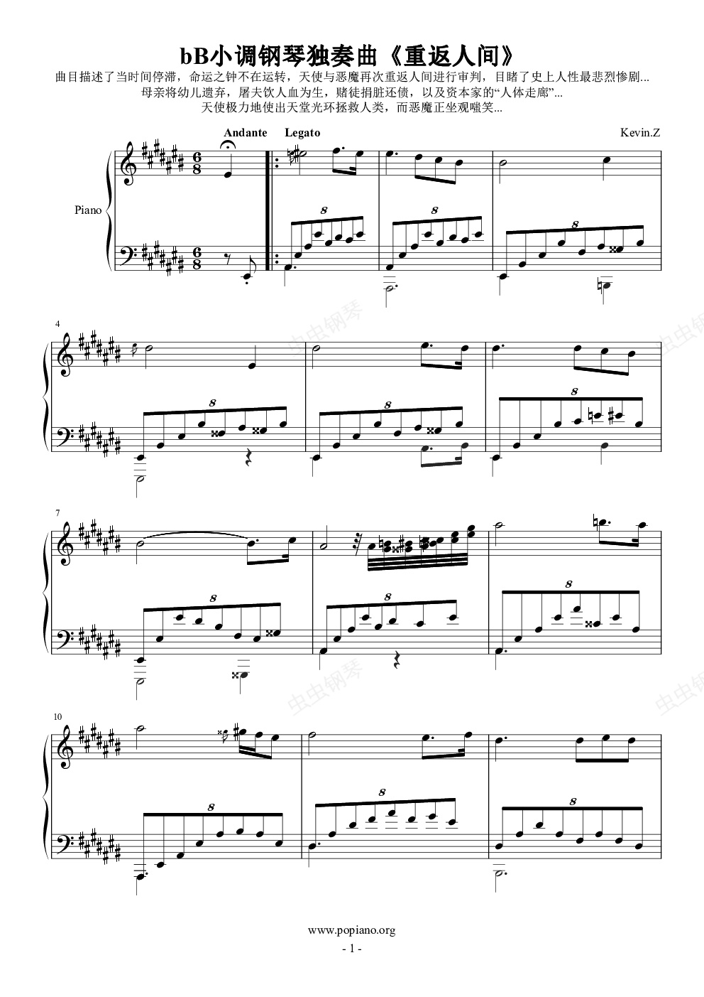 钢琴谱:bB小调钢琴独奏曲《重返人间》