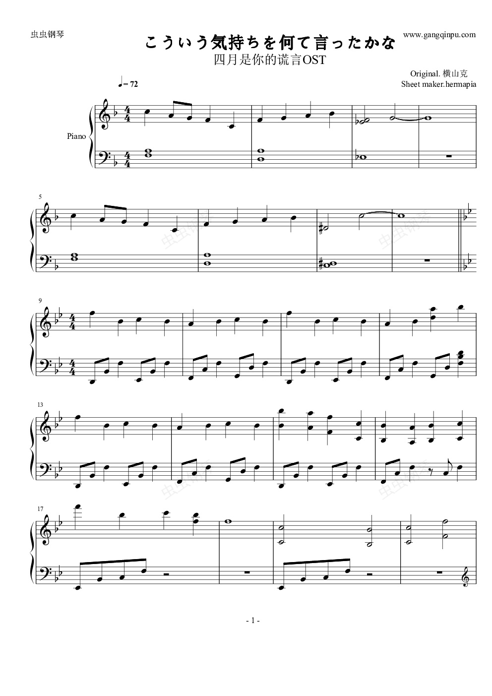 钢琴谱:【四月是你的谎言】OST こういう気持ちを何て言ったかな