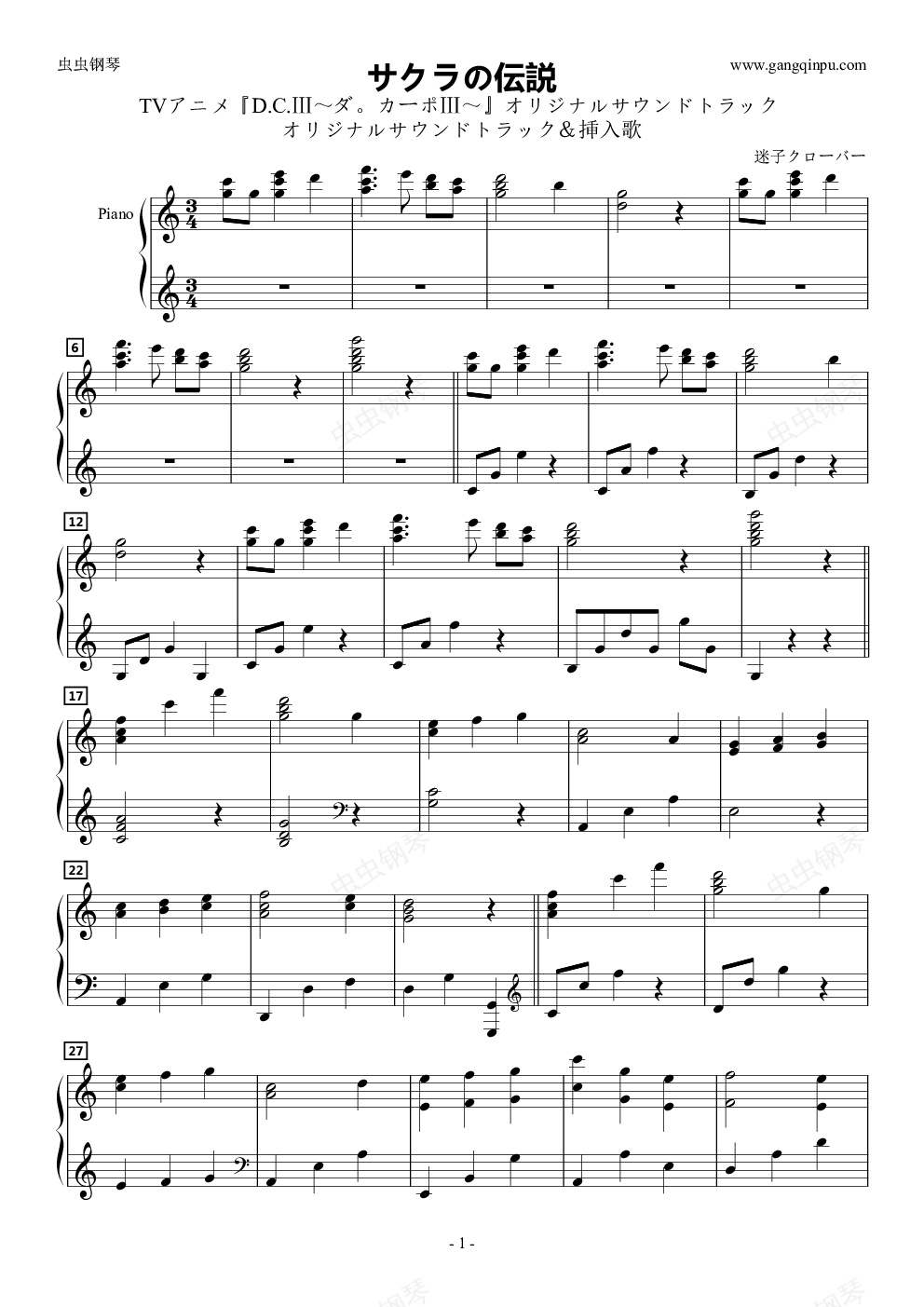 钢琴谱:サクラの伝説