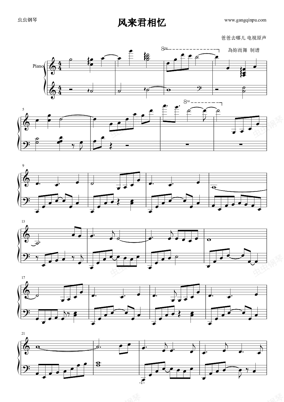 钢琴谱:风来君相忆