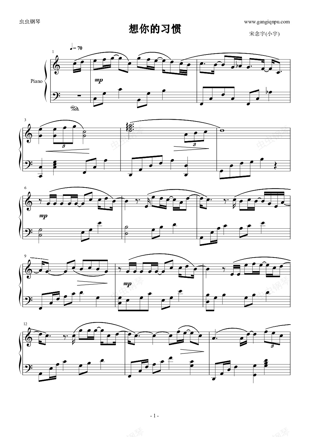 钢琴谱:想你的习惯