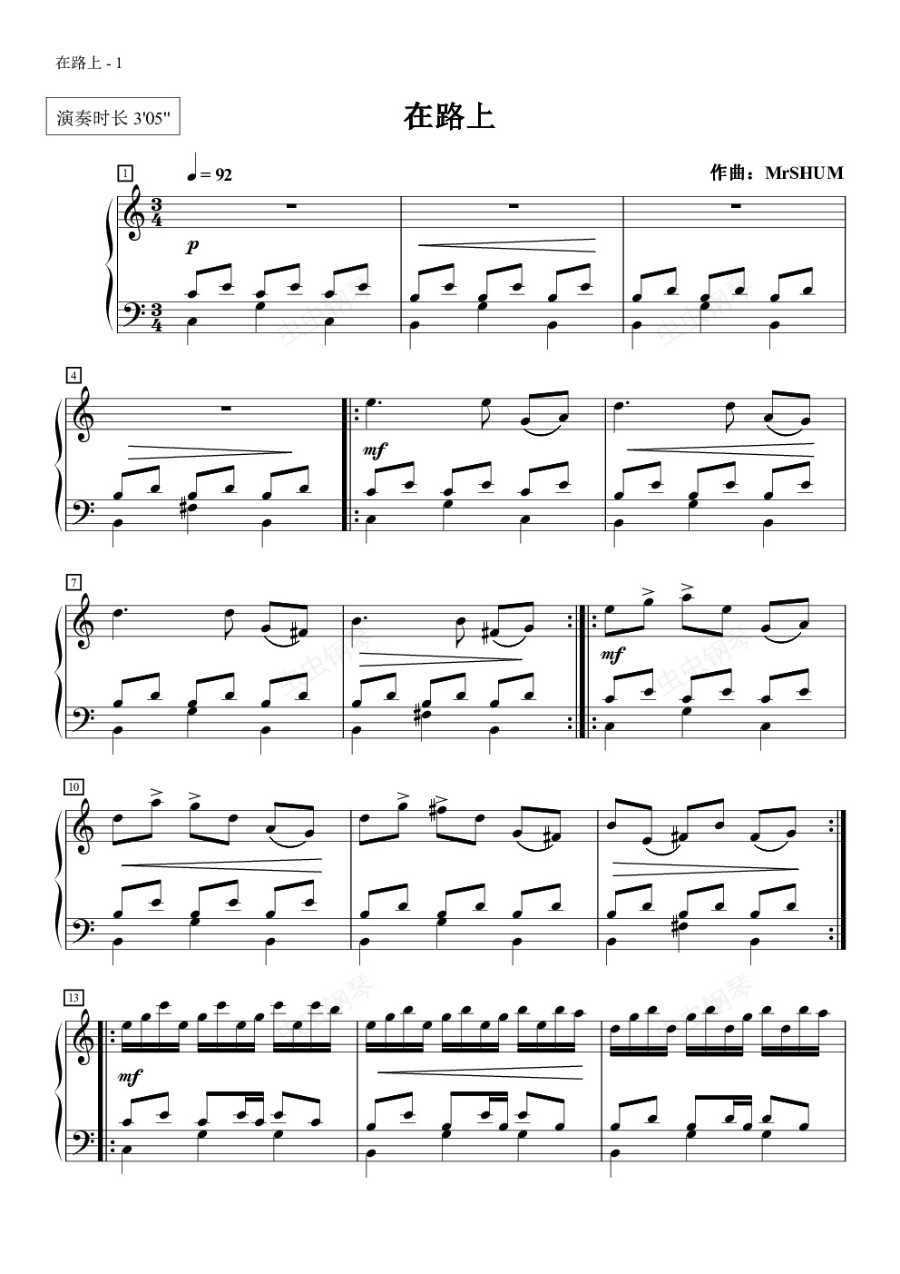 钢琴谱:旅行路上
