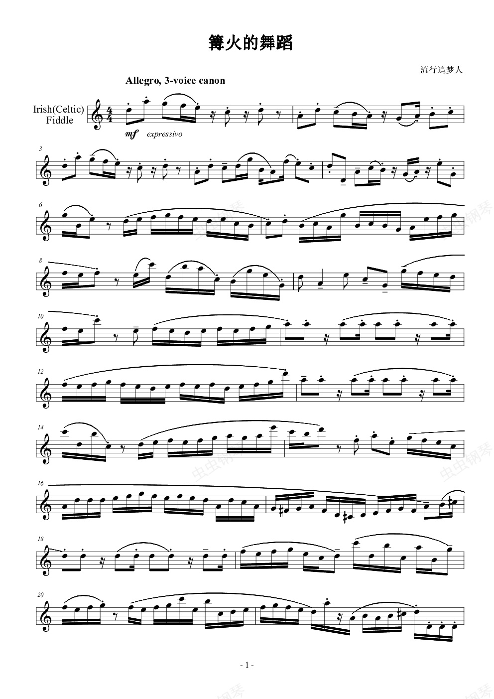 钢琴谱:篝火的舞蹈-完整版