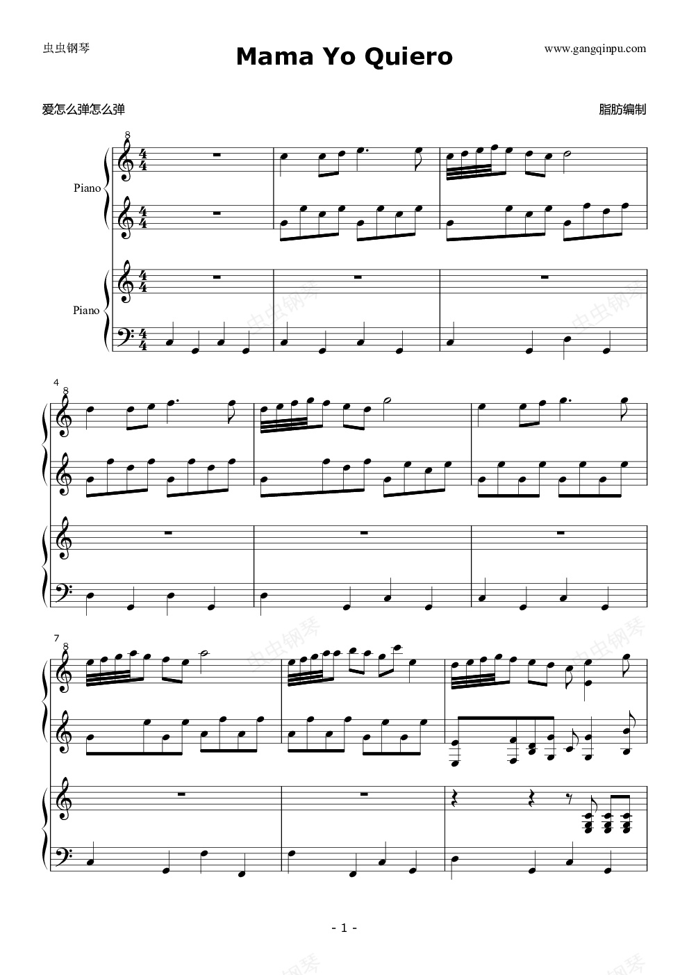 最近跟可夫狂练四手联弹,从动物狂欢节一直到马刀舞曲再到旧口袋,然后有一天翻到这首喜剧电影《大商店》里面的四手联弹,于是我花了七个小时把它谱出来了,曲子在后面两只手有冲突,推荐双钢演奏,四手勉强可以。