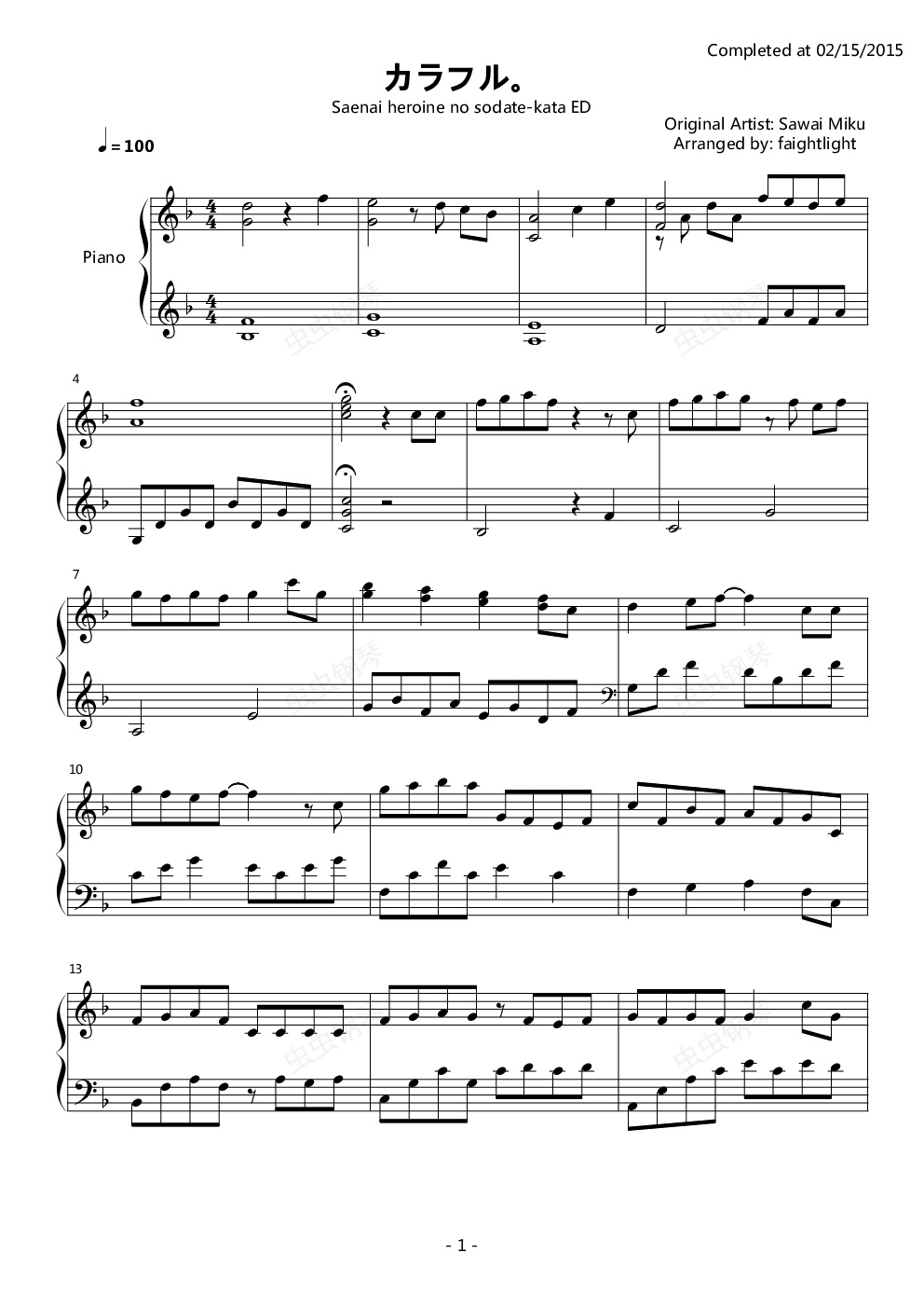 钢琴谱:【路人女主的养成方法】ED-カラフル。