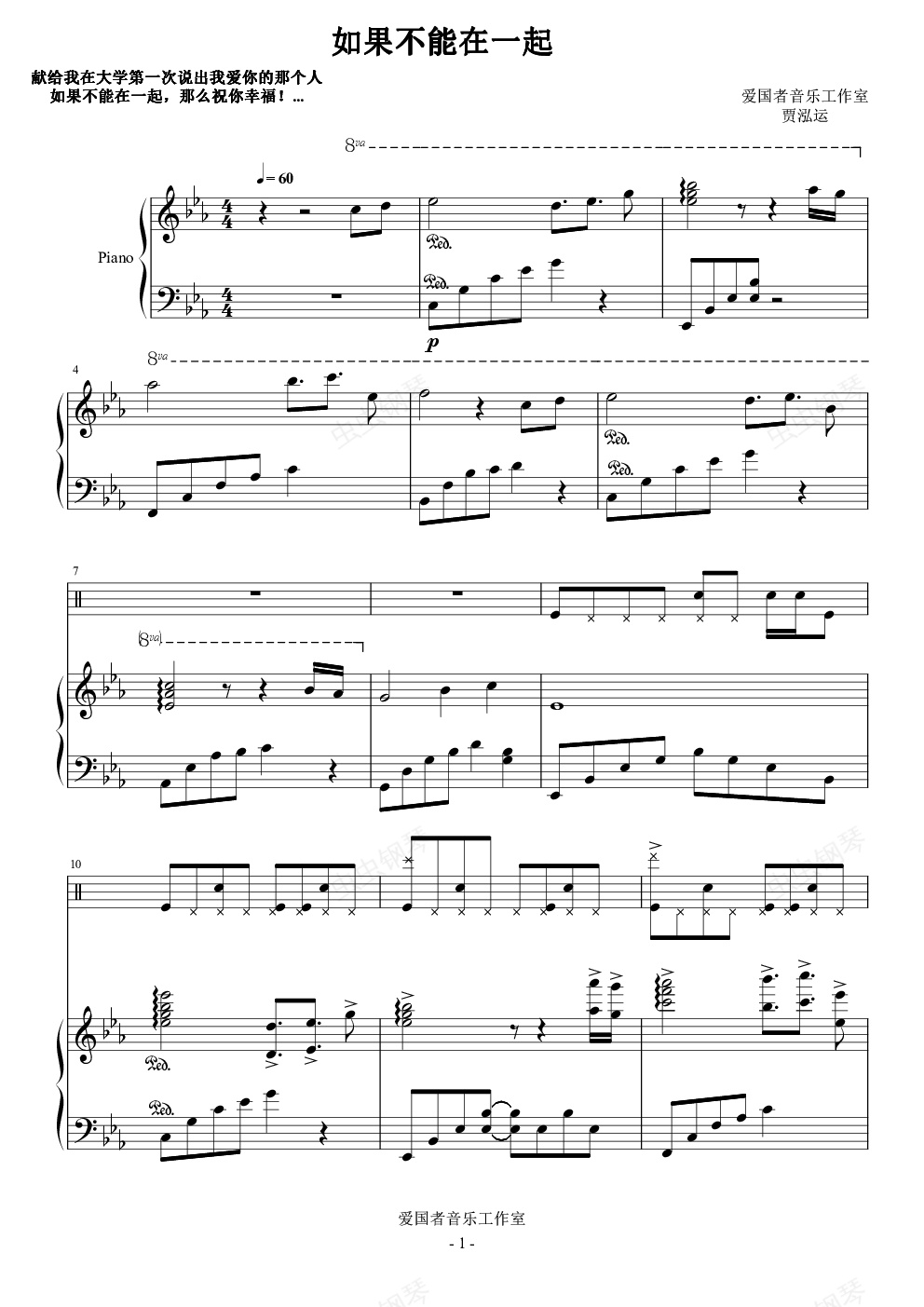 钢琴谱:如果不能在一起