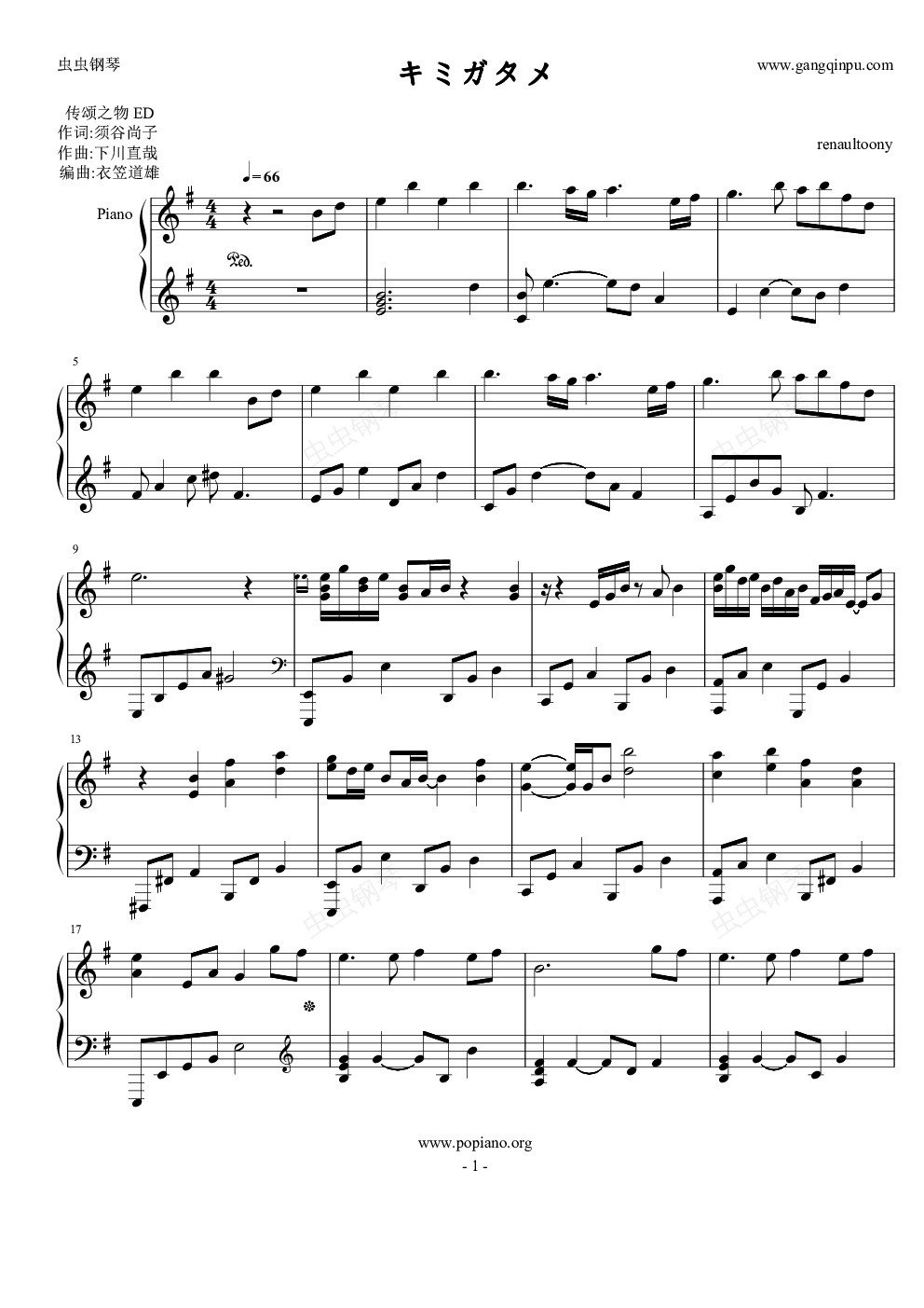 钢琴谱:キミガタメ-《传颂之物》最终话片尾曲