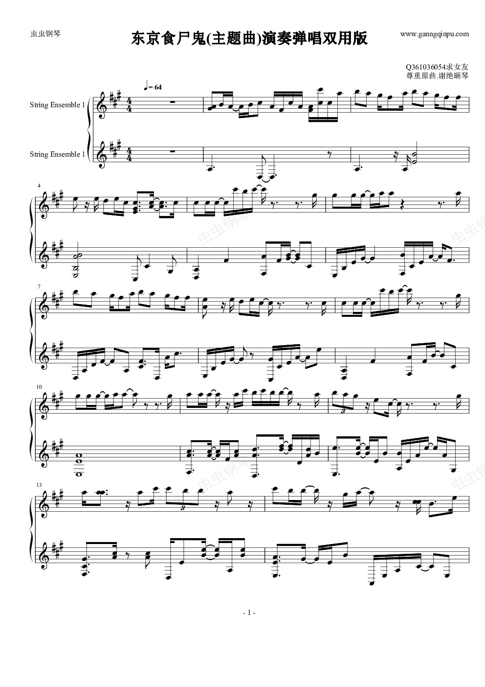 钢琴谱:【2021完美诠释版】东京食尸鬼主题曲(Unravel)